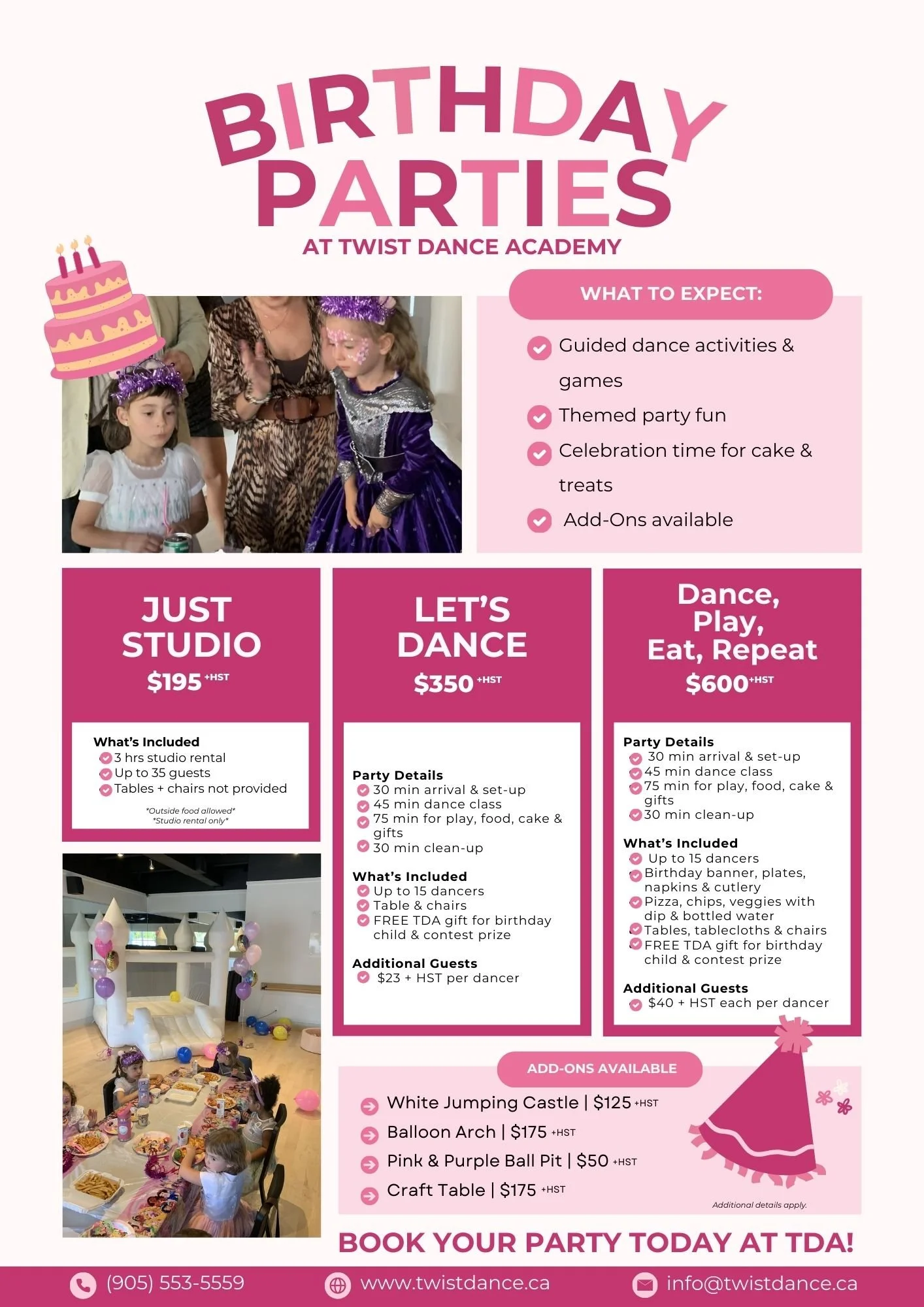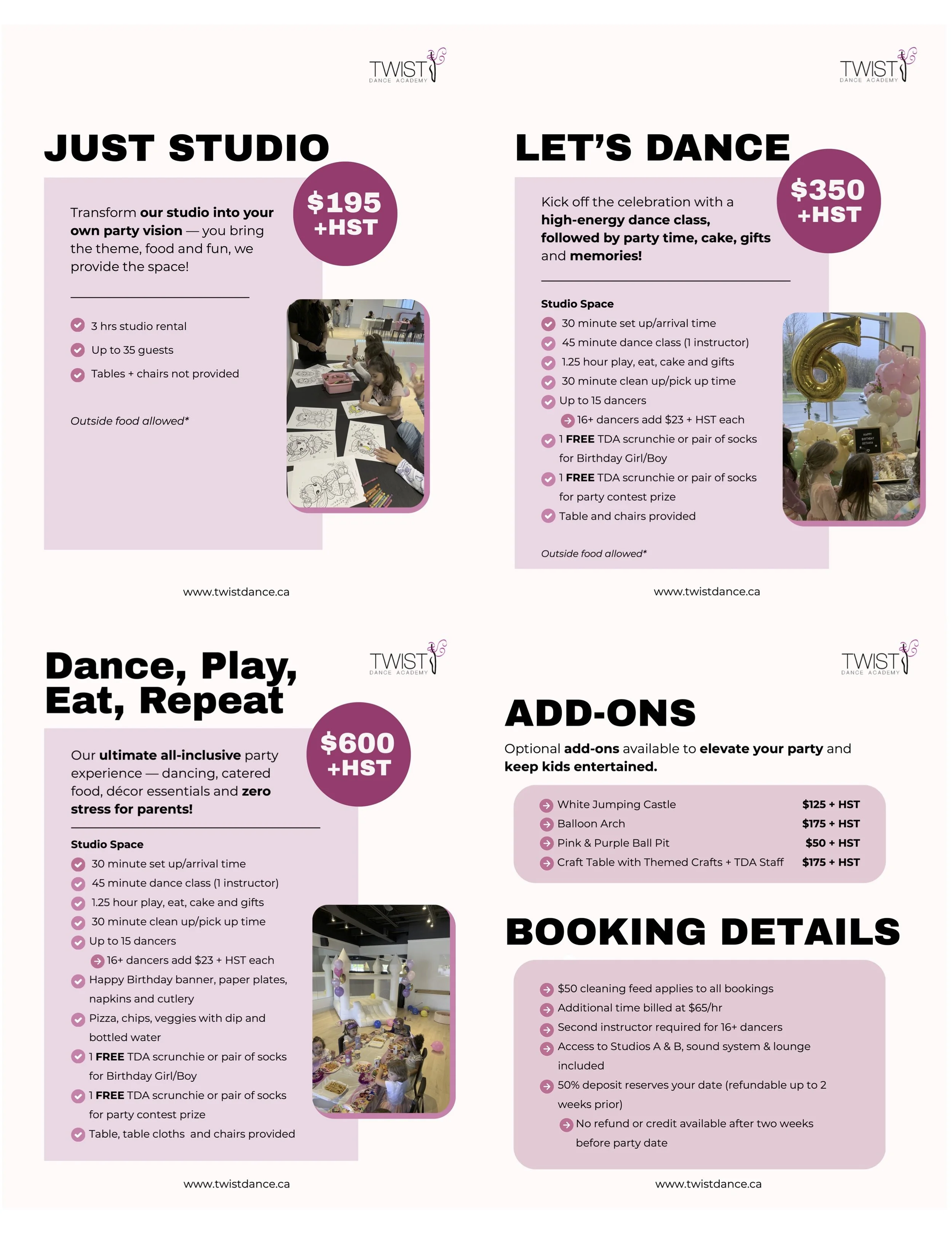 Offering parties on Friday evenings, Saturday afternoons or Sunday all day!See below for package details.